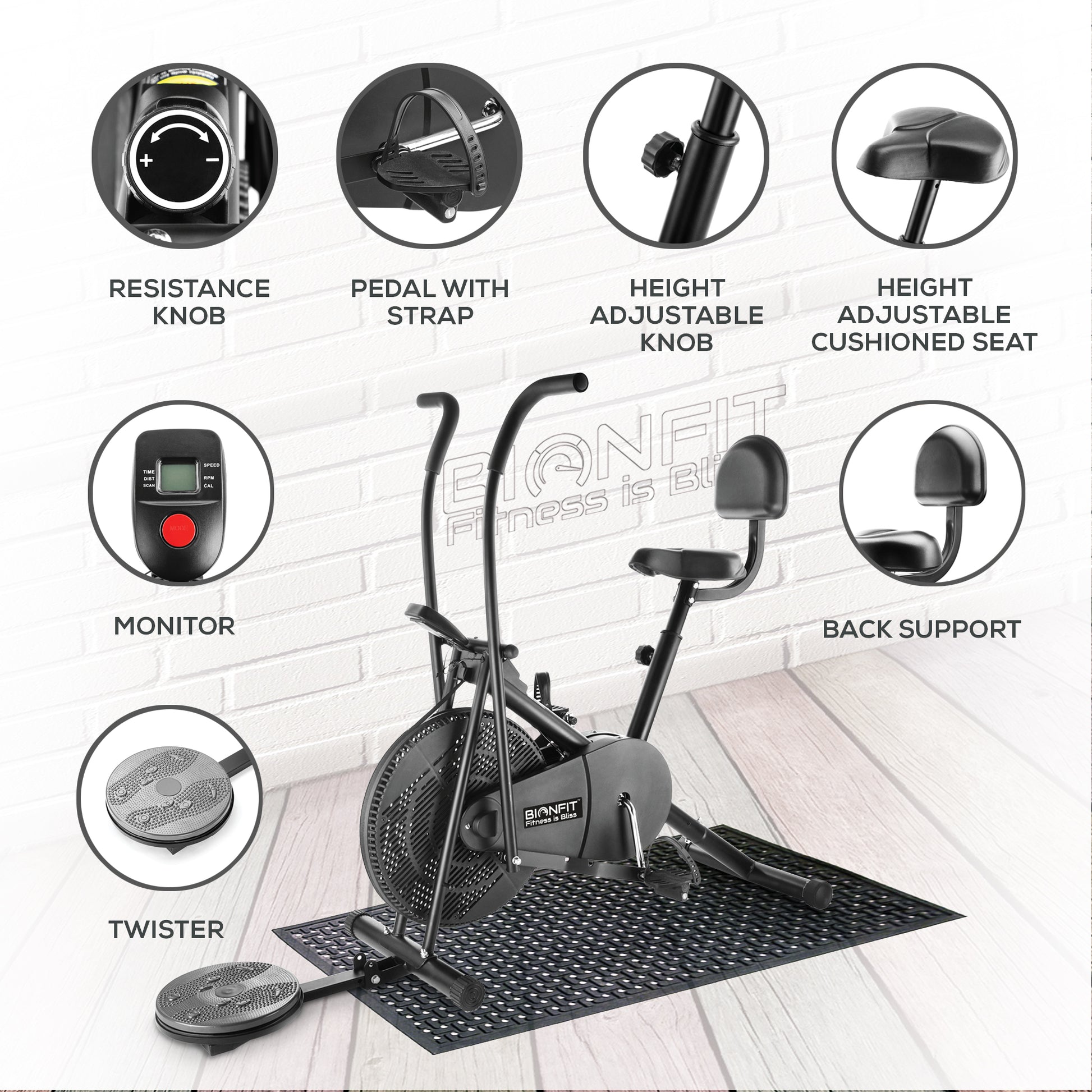 Bionfit ON04M Full-Body Workout Air Bike with Moving Handlebars, Back Support, and Twister - Durable and Adjustable for all Fitness Levels - 1 Year Warranty