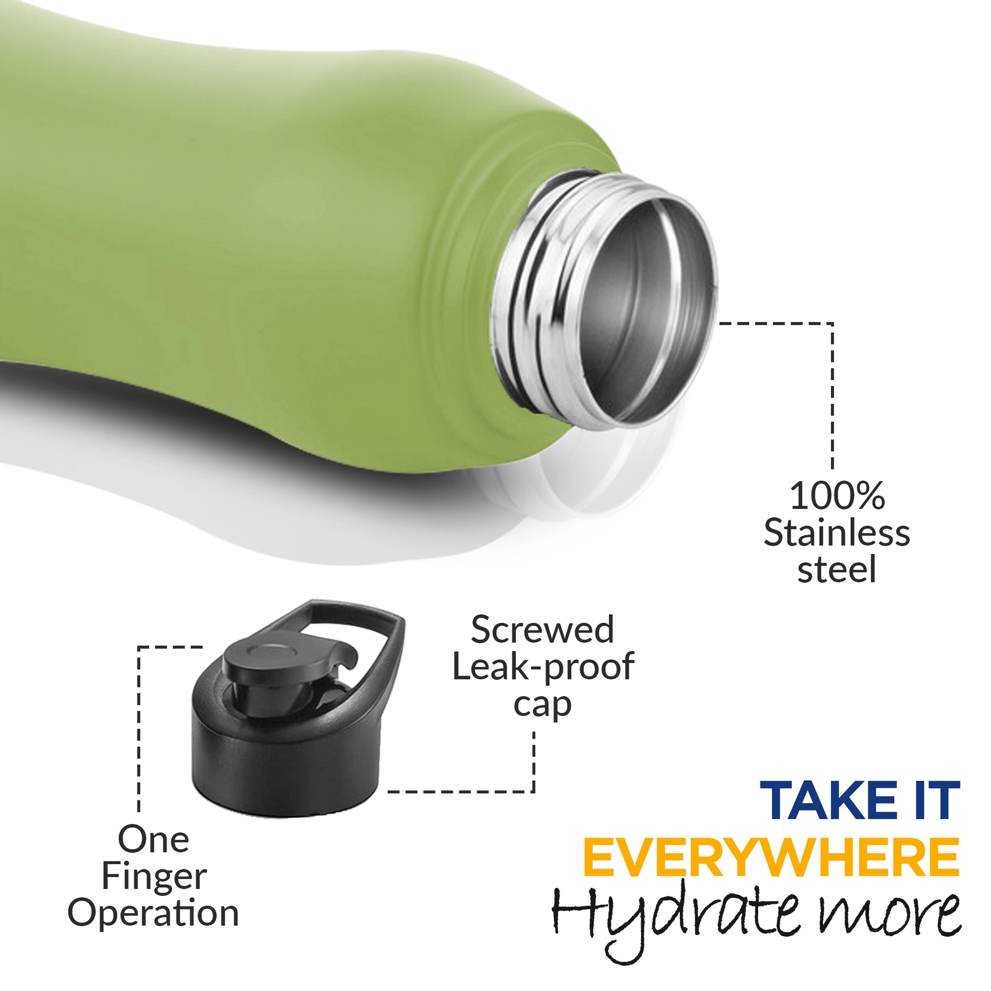 Constructed from premium stainless steel, this bottle ensures robustness for all your adventures while keeping your beverages fresh and free from harmful chemicals. The sleek green color exudes a refreshing vibe, complemented by steel accents that add a touch of sophistication. The ergonomic design features a secure lid that prevents leaks and spills, offering convenience during your busiest days.
